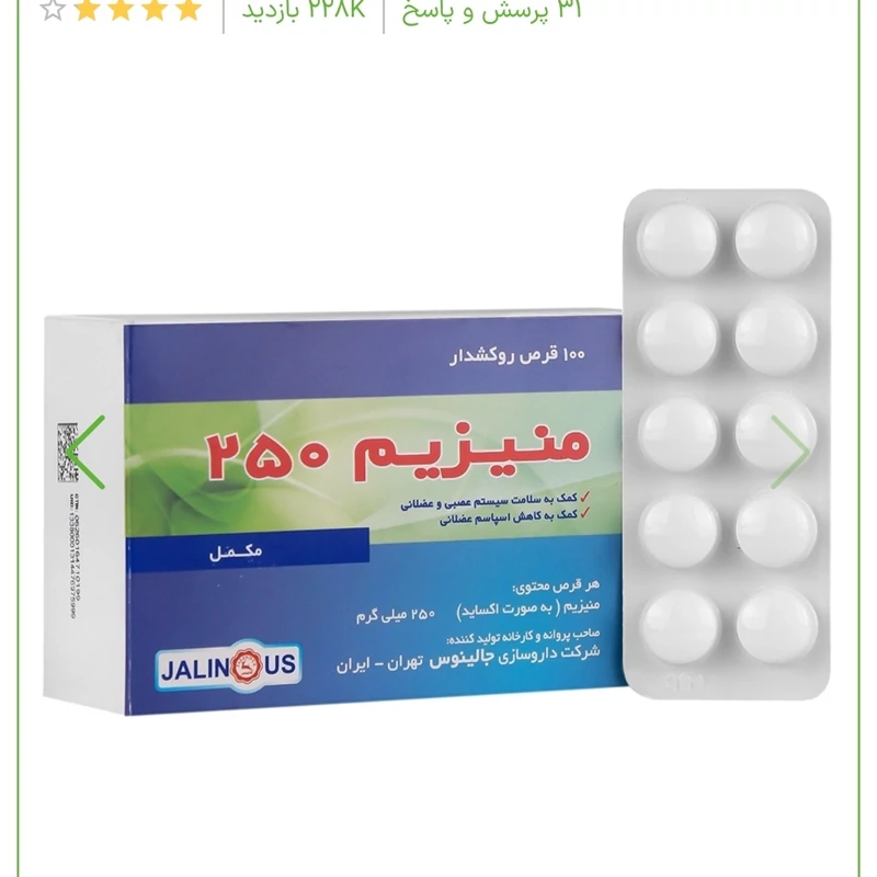 منیزیوم 250 میلی گرم