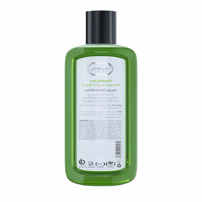 شامپو تقویت کننده مو دیپ سنس مدل آملا و هاماملیس مناسب موهای چرب حجم 200 میلی لیتر
