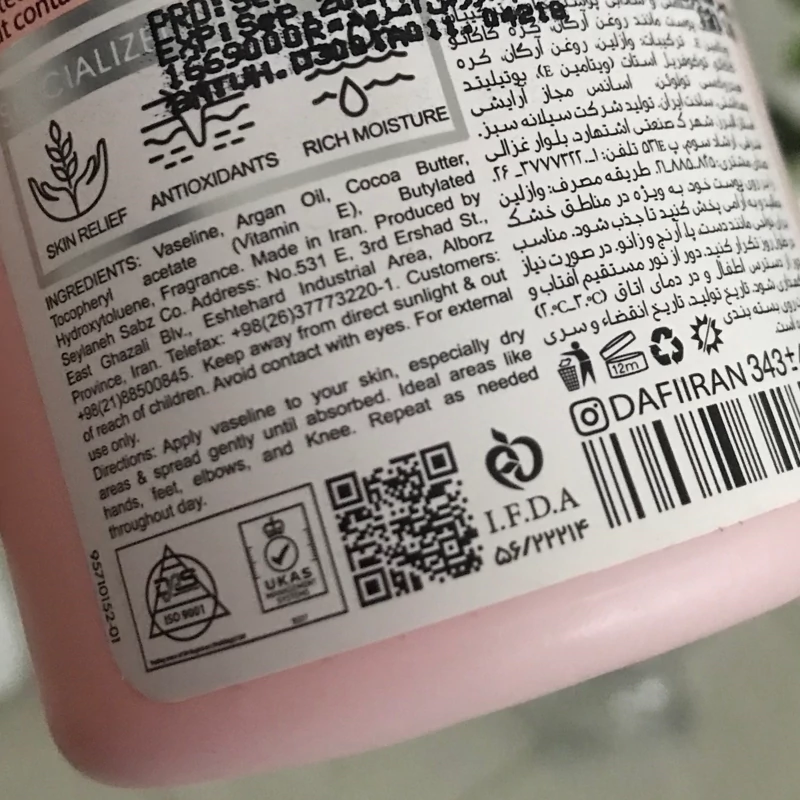 عصارههای موجود فاقد عصاره شماره مجوز 56/22214 سازگار با پوستهای خشک ترکیبات روغن های طبیعی نوع محفظه پمپی صادرکننده مجوز سازمان غذا و دارو سایر توضیحات - حاوی روغن آرگان