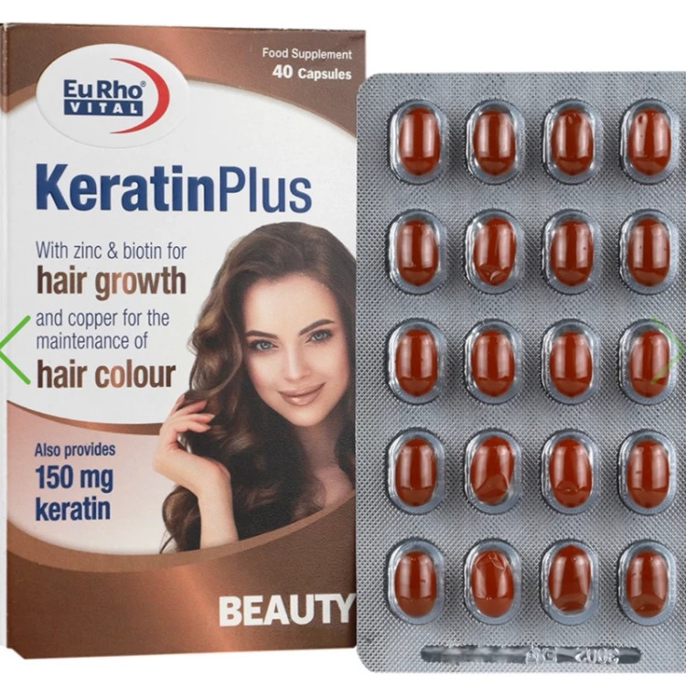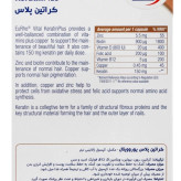 کراتین پلاس یوروویتال حاوی کراتین، روی، بیوتین، مس، فولیک اسید، ویتامین B12 و ویتامین D کراتین پلاس یوروویتال موثر در حفظ سلامت و شادابی پوست کاهش ریزش مو به واسطه تقویت و حفظ ضخامت مو کراتین پلاس مفید در حفظ استحکام ناخنها و کاهش شکنندگی آنها موثر در افزایش سطح انرژی بدن و کاهش احساس خستگی