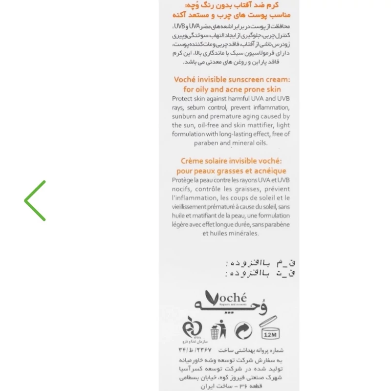 کرم ضد آفتاب بی رنگ وچه در بسته بندی تیوپ به حجم 40 میلی لیتر