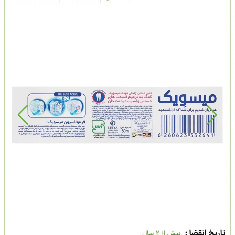 نوع محصول خمیر دندان سایز 50 میلی لیتر طعم موز بلوبری محل مصرف دندان کد بهداشتی 56/27120 گروه خمیردندان کودک نوع محفظه تیوپ کشور سازنده ایران