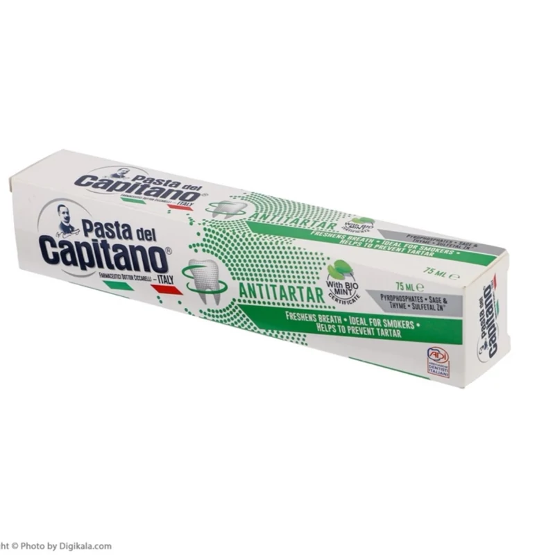 خمیردندان ضد جرم (آنتی تارتار) پاستا دل کاپیتانو تحت لیسانس داروسازی دکتر چیکارلی - ایتالیا و تایید شده توسط انجمن دندانپزشکان ایتالیا می باشد. این محصول یک خمیر دندان ضد جرم بسیار قوی است که از تشکيل پلاک های باکتريايی که باعث ايجاد تارتار (جرم) مي شوند جلوگیری می کند. همچنین این محصول برای افرادی که قهوه و کافئین و ... زیاد مصرف می کنند، مناسب می باشد.