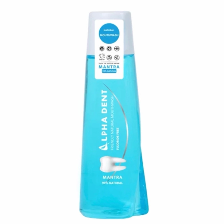 دهانشویه طبیعی بدون فلوراید مانترا آلفادنت با دارا بودن مواد آنتی باکتریال موثر، جمعیت باکتری ها را در سراسر حفره دهانی کاهش میدهد و به دلیل دارا بودن عصاره گیاهی نعناع سبب ایجاد حس طراوت و شادابی در دهان میشود.
