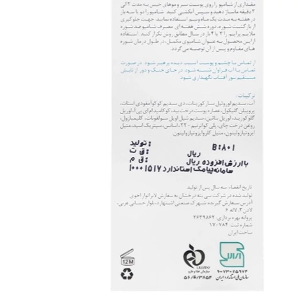 تولید شده به عنوان ضد شوره ملایم و مکمل درمانی