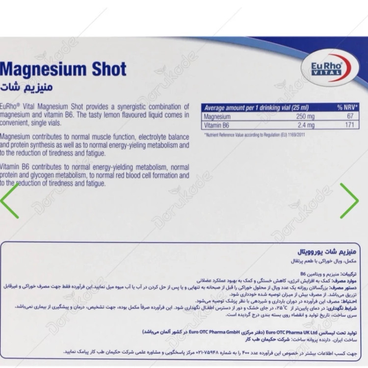 مکمل منیزیم شات حاوی منیزیم سیترات و ویتامین ب6