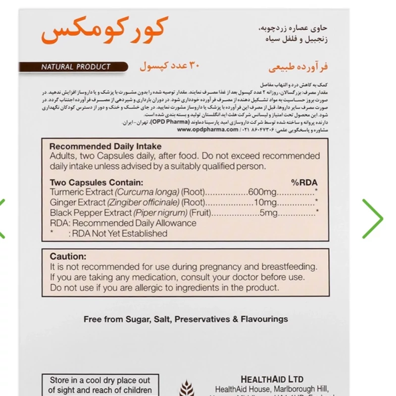مکمل گیاهی کورکومکس ضد درد