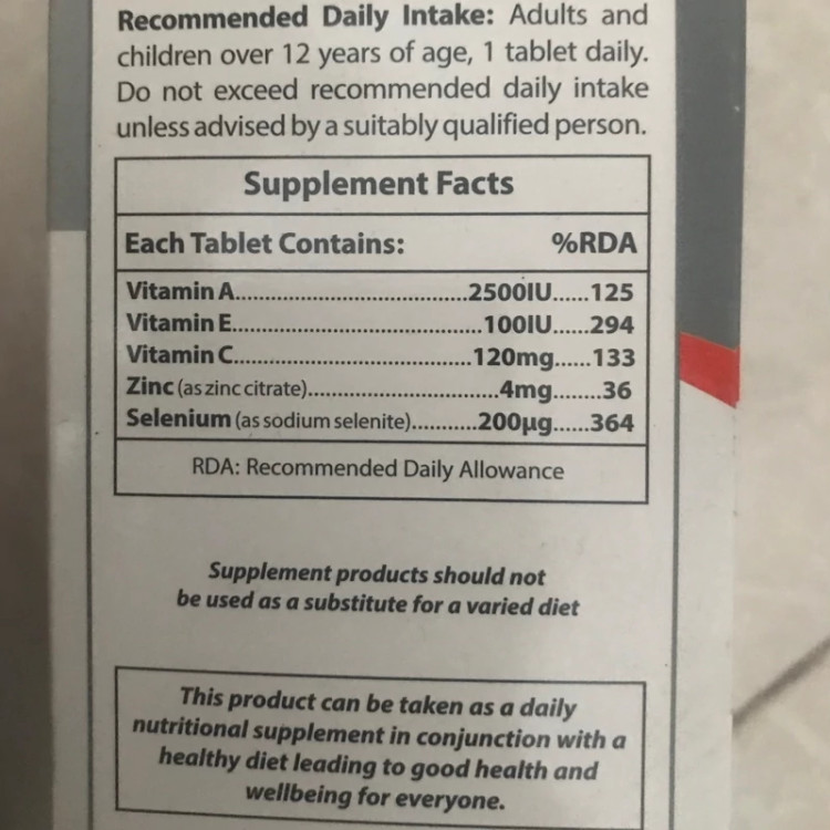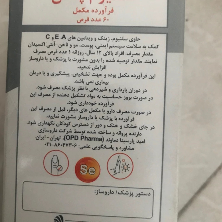سلنیوم پلاس حاوی سلنیوم، زینک، ویتامین های C و E و A