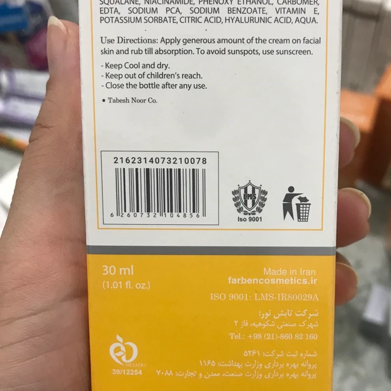 ویتامینها و مواد معدنی موجود C B3 (نیاسینامید) هیالورونیک اسید