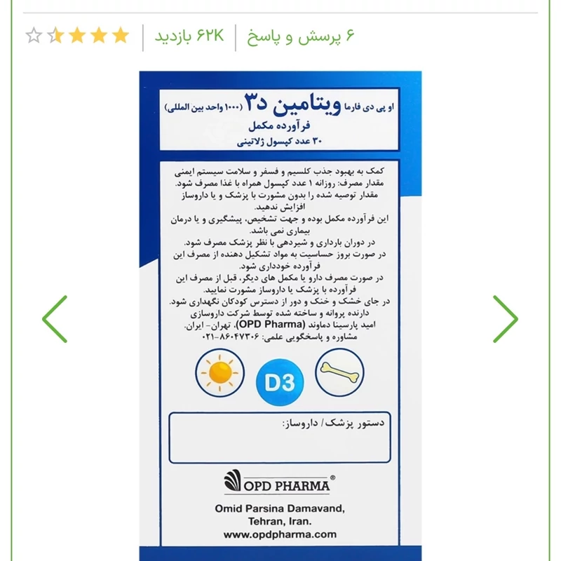 * ویتامین د3 1000 اوپی دی فارما، تامینکننده ویتامین D روزانه بدن