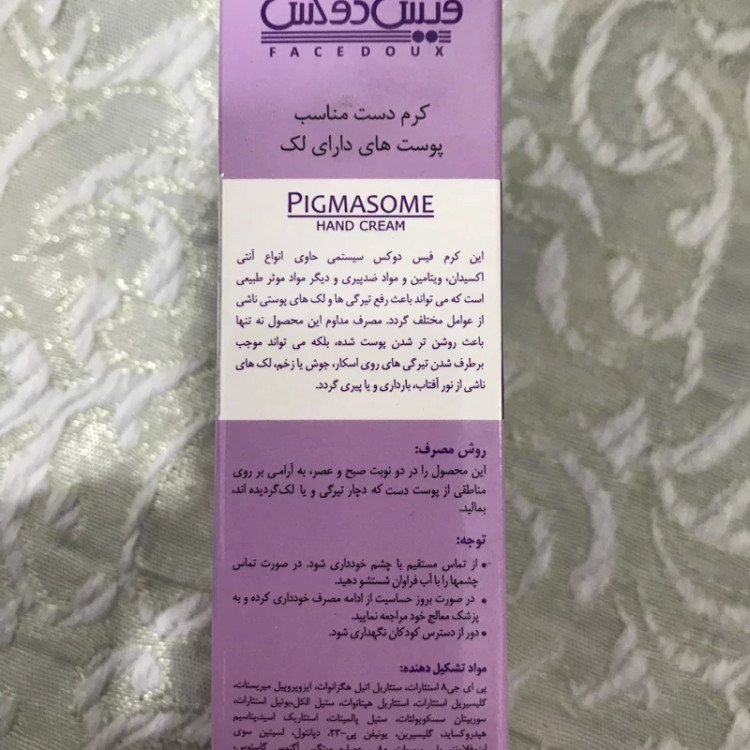 پوست دستها هم مانند پوست صورت نیازمند رسیدگی و مراقبت است، عواملی مانند افزایش سن، عدم توجه و مواظبت از پوست، نور آفتاب و مواد شوینده نامناسب میتواند باعث به وجود آمدن لک و تیرگی روی پوست دست شود. حتی شاید با توجه به دستهای مادر یا مادربزرگتان متوجه بروز لکها و خطوط ریز و درشت روی پوست دستشان شده باشید. همه اینها با استفاده از محصولات تخصصی مراقبتی پوست میتواند کاهش یابد و یا در برخی موارد رفع شود. کرم پیگمازوم روشن کننده دست فیس دوکس با داشتن کمپلکس روشن کننده نانووایت و سولفوراوایت به عنوان یک کرم تخصصی ضد لک و روشن کننده قوی پوست دست به شمار میرود، به رفع تیرگی و بهبود همزمان چروک دست کمک مینماید و در آبرسانی و حفظ رطوبت پوست دست تاثیر مثبتی دارد. کرم پیگمازوم فیس دوکس حاوی ترکیبات امن ضد لک آربوتین و گلوتاتیون بوده، از تجمع رنگدانهها روی پوست جلوگیری میکند و به کاهش تیرگیها و روشن و شفافتر شدن آن کمک مینماید.کرم روشن کننده دست پیگمازوم موجب افزایش قوام و استحکام پوستهای نازک میشود، حاوی ویتامینهای C، E و B5 بوده که ضمن حفظ رطوبت پوست با دارا بودن آنتی اکسیدان به خوبی از آن در برابر رادیکالهای آزاد و عوامل محیطی محافظت میکند و مانع از پیری زودرس آن میشود. کرم روشن کننده دست فیس دوکس فاقد کوجیک اسید و هیدروکینون بوده، برای استفاده خانمهای باردار و شیرده هم مناسب است و به جوانسازی و نرمی و لطافت پوست دست کمک میکند. این محصول حاوی موثرترین ترکیبات قوی ضد لک و تیرگی لیپوزومال بوده، بدون ایجاد حساسیت به نور در کاهش لک و تیرگی ناشی از نور آفتاب، افزایش سن، اسکار زخمها یا جوشها موثر است.