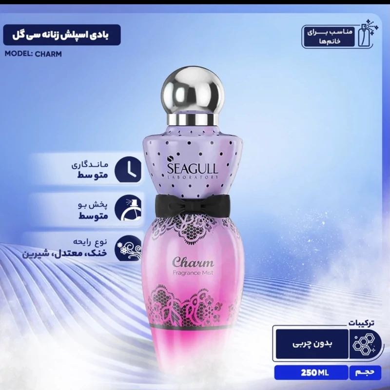 اسپری خوشبوکننده بدن سی گل با فرمولاسیونی غنیشده از روغنهای طبیعی، مرطوبکنندهها و رایحههای دلنشین، گزینهای مؤثر برای حفظ طراوت و بوی خوش در طول روز است. این محصول علاوه بر خوشبو کردن بدن، با خاصیت آبرسانی خود به نرمی و لطافت پوست کمک کرده و مانع از خشکی آن میشود. ویژگی مهم این اسپری، ترکیبات عاری از مواد شیمیایی مضر و فرمولاسیون ضدحساسیت آن است که آن را برای انواع پوست، حتی پوستهای حساس مناسب میسازد. همچنین با جلوگیری از تعریق بیش از حد و پخش بوی قوی، انتخابی عالی برای روزهای گرم یا فعالیتهای روزمره به شمار میآید. اسپری بدن سی گل با رایحهای ماندگار، احساس شادابی و تازگی را در طول روز برایتان حفظ میکند.